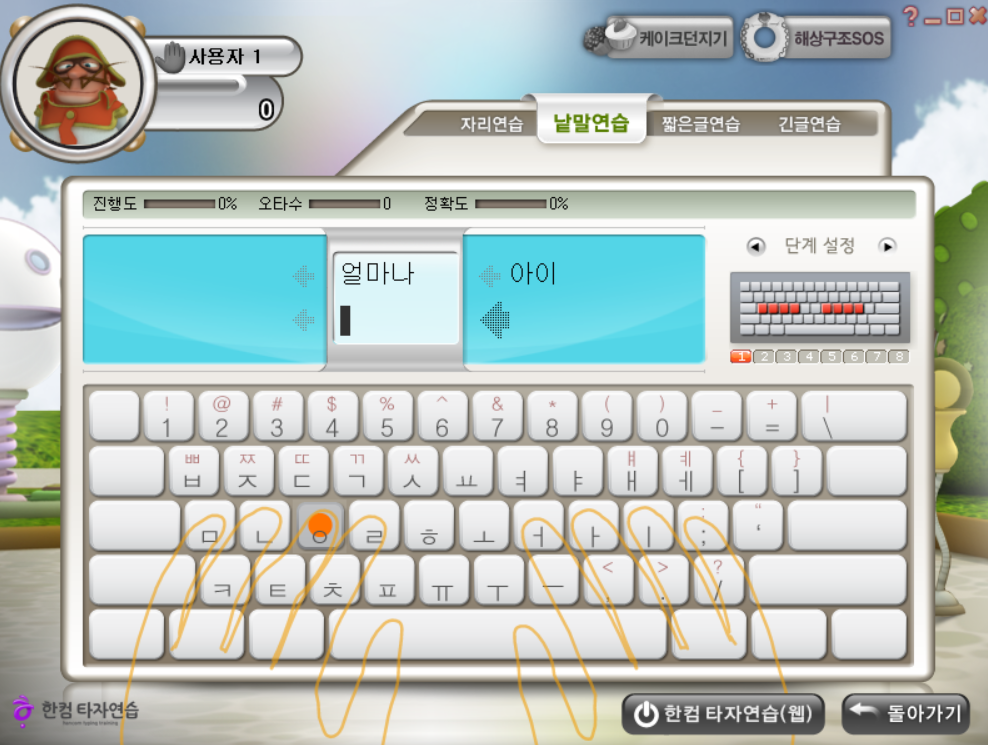 - 낱말 연습 : 자리연습에서 익힌 단어를 통해 타자에 익숙해지는 데 도움을 줍니다.