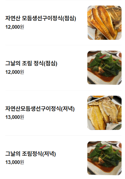 자연산모듬생선구이정식(저녁): 13,000원