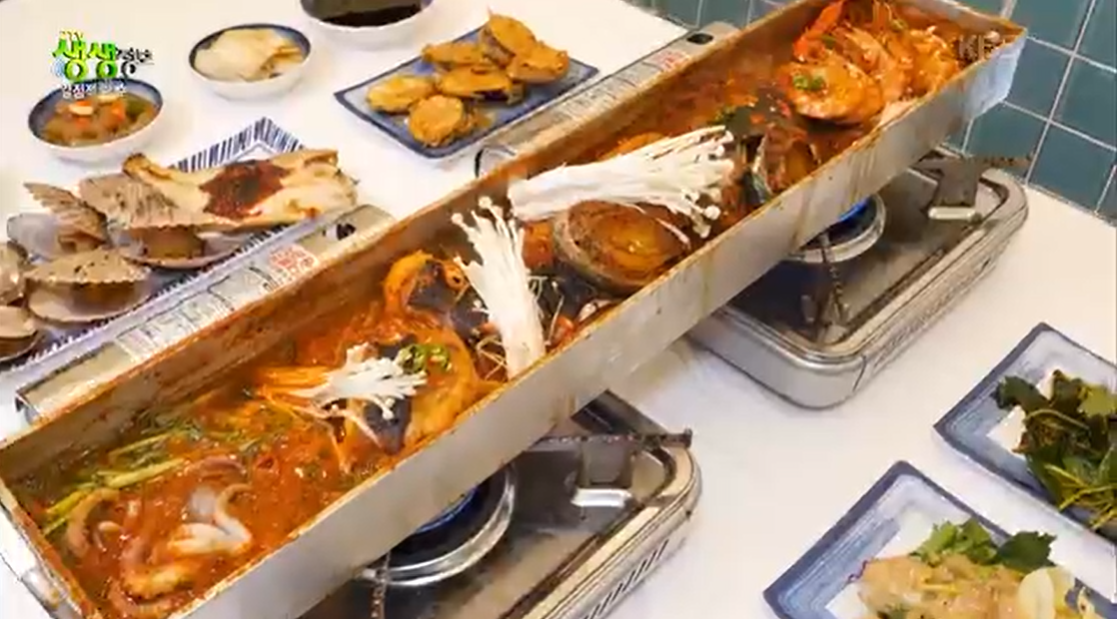 방송에 나온 이 집의 가장 큰 특징은 단연 압도적인 비주얼입니다. 일반적인 냄비가 아닌 특수 제작된 긴 철판을 사용하여 갈치 한 마리가 통째로 들어가거나, 문어, 전복, 새우 등 다양한 해산물이 산더미처럼 쌓여 나옵니다. 숯불 화로구이와 해산물을 동시에 즐길 수 있는 컨셉으로 이미 광진구 미식가들 사이에서는 입소문이 난 곳입니다.